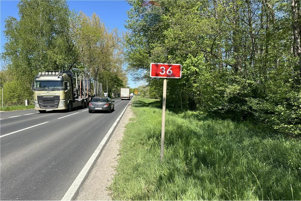 bezpośrednio przy skrzyżowaniu drogi krajowej DK36 aktualnie wjazd