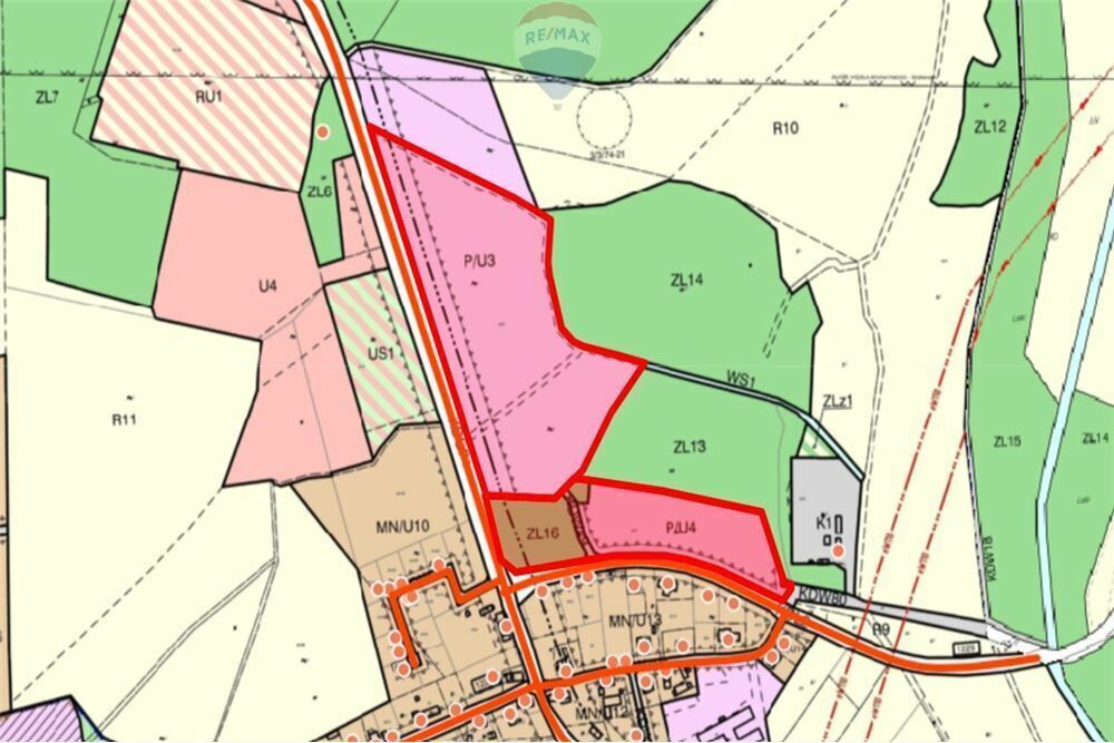 Teren objęty MPZP działki oznaczone symbolem PU/3 i PU4